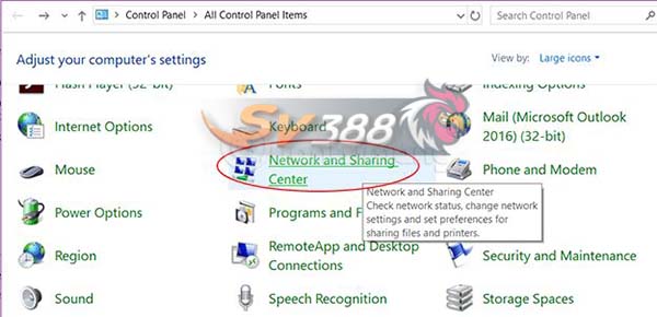 Bước 1: Vào Control Pannel ===> Network and Sharing Center ===> Open Network and Internet Settings kéo xuống dưới tìm tùy chọn Change adapter options.