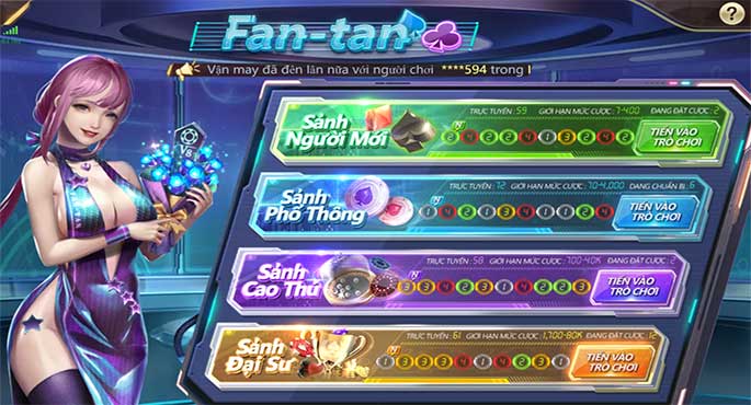 Bước vào sảnh chơi Fan Tan 3D tại K8, người chơi có 04 lựa chọn tương ứng với 04 phòng chơi với cấp bậc từ dễ đến khó.