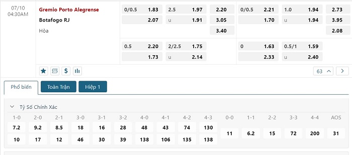 Tỷ lệ kèo bóng đá Gremio vs Botafogo RJ – 04h30 – 10/07/2023