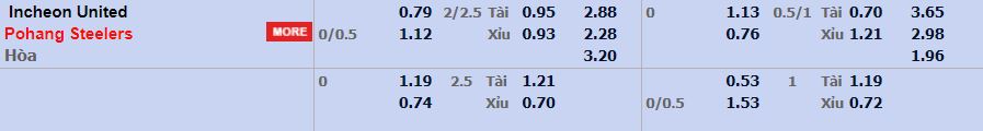- Mức kèo nhà cái cược chấp trận này: Pohang chấp 0,25 trái. Incheon ăn 0,79. Pohang ăn 1,12